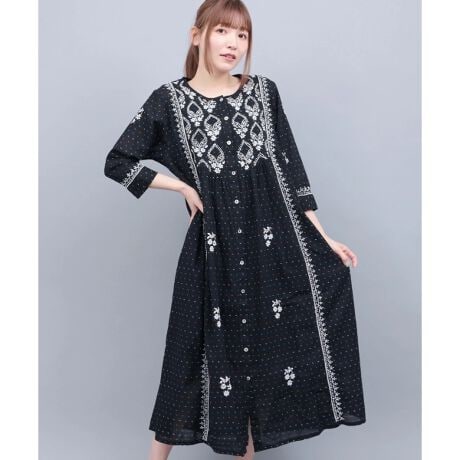 胸元から背中まで、美しい刺繍をたっぷりと施した華やかなワンピース。