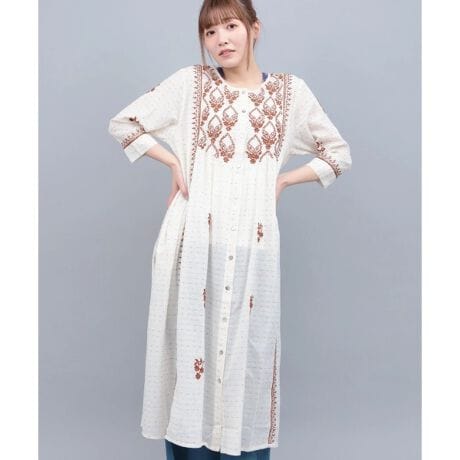 胸元から背中まで、美しい刺繍をたっぷりと施した華やかなワンピース。