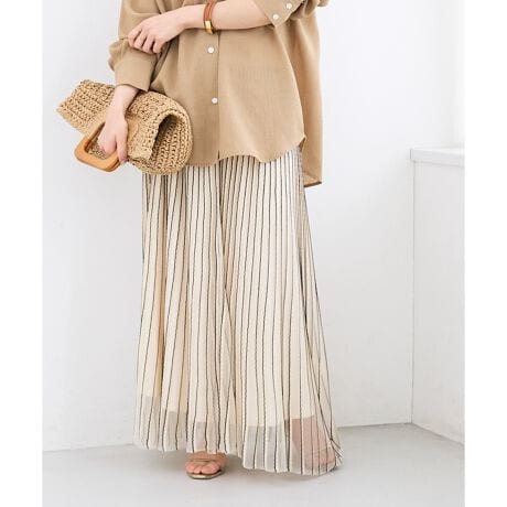 シアー×ストライプが奥行きを生む、ニットレイヤードスカート。