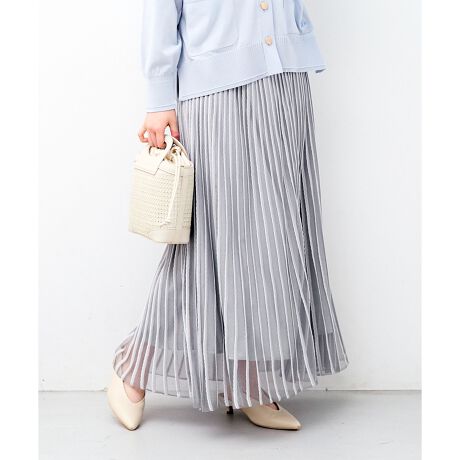シアー×ストライプが奥行きを生む、ニットレイヤードスカート。