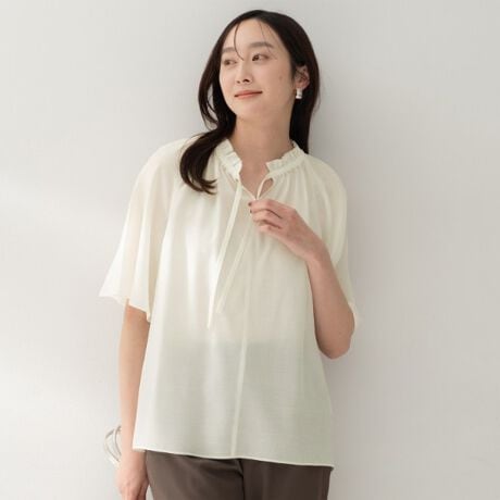 ふんわりとしたシルエットにネックギャザーを施したブラウス。