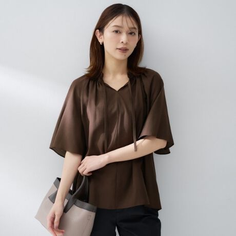 ふんわりとしたシルエットにネックギャザーを施したブラウス。