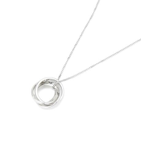 3つのリングが重なり合う立体トップが印象的な、オールメタルのネックレスです。
