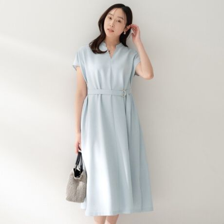 上品でミニマルな魅力が際立つバンドカラーワンピース。