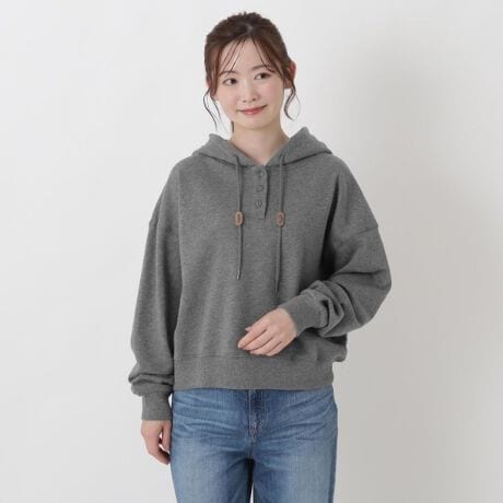袖が長めにデザインされた裏毛パーカーは、手元にほどよくたまるシルエットが魅力。