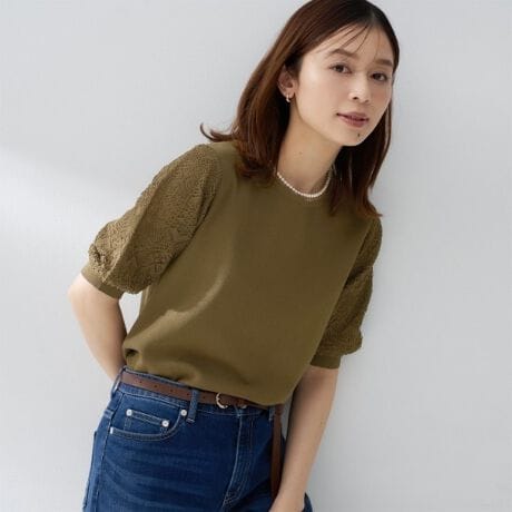 上品な五分袖丈で、女性らしく大人フェミニンな印象に仕上がります。