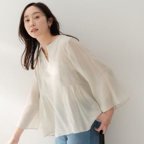 軽やかなキーネックのブラウス。