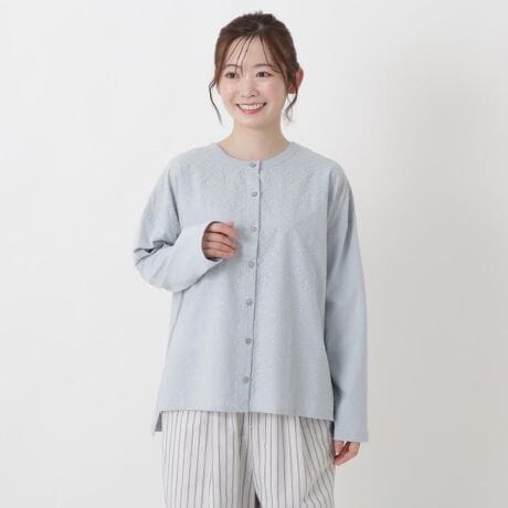 1枚でコーディネートが完成するアイテムです。前開きのボタン仕様で、羽織としてもトップスとしても着まわせます。