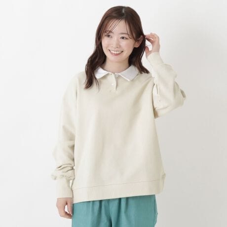 [型番:41015802]【デザイン】ポロ衿が特徴のプルオーバー。衿部分には別布を使用しており、開襟にしてもオシャレに決まります。着回し◎のプルオーバートップスで、コーディネートの幅が広がります。※洗濯表示は詳細画像をご参照ください。※照明の関係により、実際よりも色味が違って見える場合があります。また、パソコン・スマートフォンなどの環境により、若干製品と画像のカラーが異なる場合もございます。