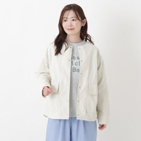ノーカラーなので合わせやすく、コーディネイトの幅が広がります。
