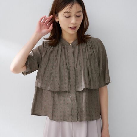 小さめのコモンプリントが特徴のブラウス。