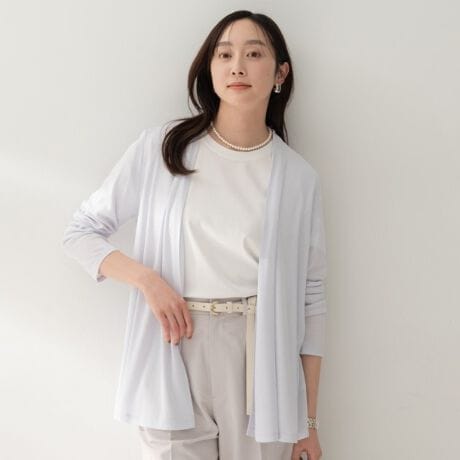 シワになりにくく接触冷感機能も併せ持った素材で、さらっと羽織れて冷房対策としても使っていただけるアイテムです。