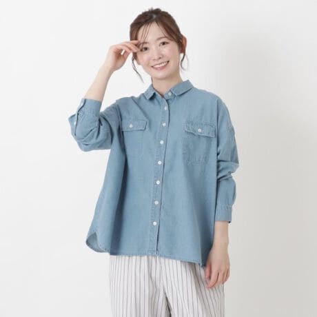 胸ポケットが主役のシャツブラウス。
