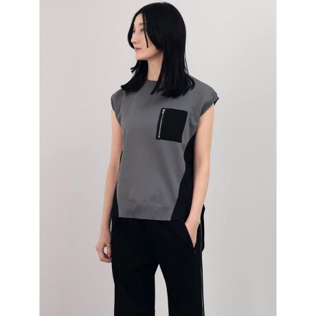 フロントのジップポケットが視線を引き寄せる、モード感漂うニットプルオーバー。