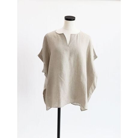 無駄を削ぎ落したシンプルなデザインが素材の表情を引き立たせるブラウス。ゆったりとしたドルマンシルエットと抜け感のあるキーネックが、リラックスした着心地とこなれた印象を演出します。ナチュラルな風合いと軽やかな落ち感がシーズンムードを高め、リラックス感のある大人のスタイルを叶えます。
