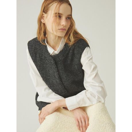 上品な表情が魅力のツイードジレ。