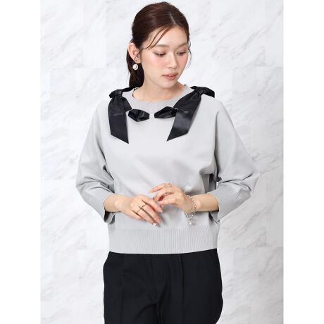首元にあしらったリボンが視線を惹きつけるニットプルオーバー。
