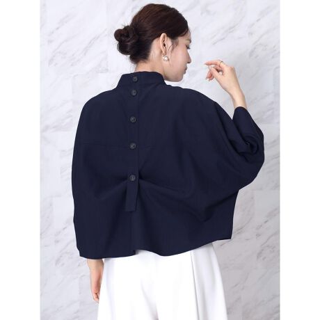 背面のボタンディテールが印象的で、さりげなく個性を添えるデザインブラウス。