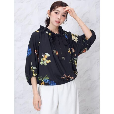 繊細なボタニカルプリントが目を惹くブラウス。