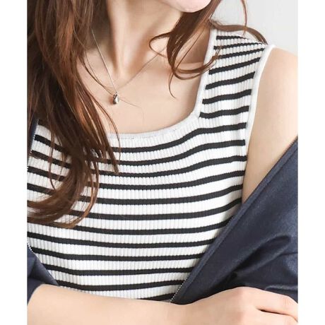 無地とボーダーの二柄展開のスクエアネックリブニットタンクトップ。