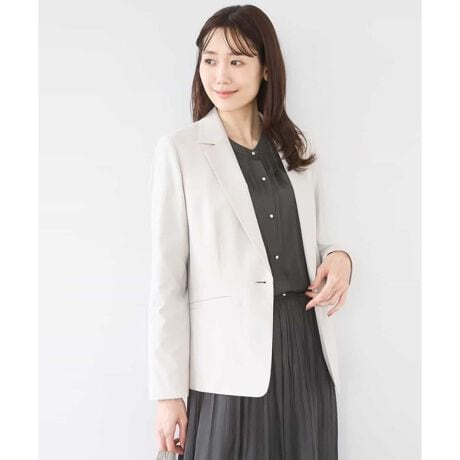 合わせるアイテムを選ばないシンプルなジャケットは毎日の通勤に最適。同素材のパンツを2型ご用意しているので、スーツセットアップとしても着用できます。