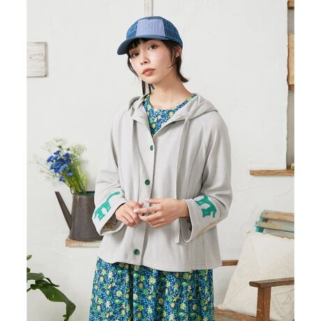 ホコモモラらしいディテールを詰め込んだパーカー。テーマの「騎士道物語」からインスピレーションを受けています。レイヤードしやすいほどよくゆとりを持たせたシルエット。ラグランスリーブでよりラフな印象をプラスします。フード付きデザインで、フロントボタンで着脱可能。両袖口にあしらった動物のアップリケが目を惹きます。デイリー使いにもぴったりなパーカーは今季イチオシのオススメアイテムです。