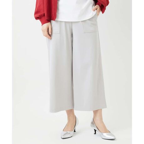 伸縮性に優れた穿き心地の良いガウチョパンツです。さらっとした肌触りで汗ばむシーズンを快適に過ごせる一着で、便利な大きめのサイドポケットもポイントです。ワイドに広がり過ぎないので、合わせるトップスを選ばず着こなしの幅が広がる汎用性の高いアイテムです。シワになりにくいポリエステルをベースにした素材を使用しており、洗濯機で簡単に洗えるところも嬉しいポイントです。