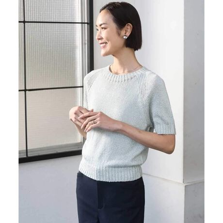 フェード感のある表情豊かな素材が魅力の半袖ニット。一枚でさらっと着るだけでも存在感があり、ワイドパンツやスカートと合わせたきれいめスタイルにもマッチします。リブのアクセントが袖の立体感を引き立て、動きのある着こなしを叶える一枚です。
