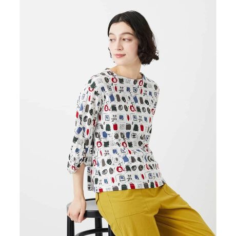 ドライタッチの質感、きれいに表面感を整えた素材にポップなプリントを施しました。強撚糸を使用しさらっとした肌触りはこれからのシーズン快適な着心地の素材です。