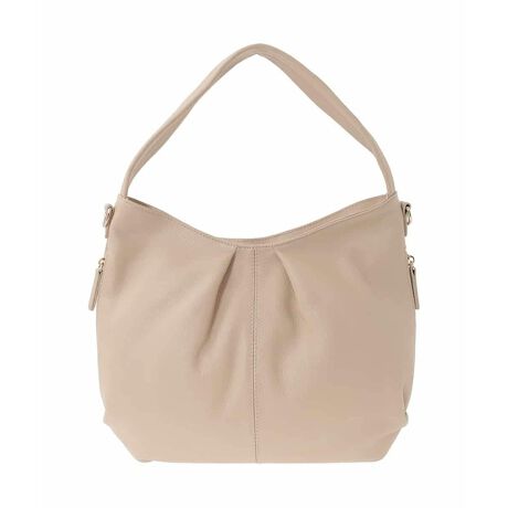 柔らかな牛革素材を使用した品のある風合が魅力のデザインバッグ。タックを寄せて丸みを出した女性らしいシルエットなのも嬉しいポイントです。しっかりと収納力もあり、お出かけ時にさっと取り出せるサイドファスナーポケット付き。ショルダーベルトも付属したマルチ仕様で様々なスタイルに合わせて頂けるユースフルなアイテムです。