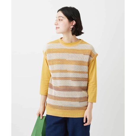 表情豊かな唯一無二のボーダーが愛着のわく1枚。クラフト感のある見え方は、スタイリングの主役になります。ブラウスやカットソーとのレイヤードはもちろん、盛夏には、タンクトップやキャミソールを合わせて涼しくお楽しみいただけます。合わせのボトムはスカートでもパンツでも高相性。使いやすいカラーバリエーションもポイントです。