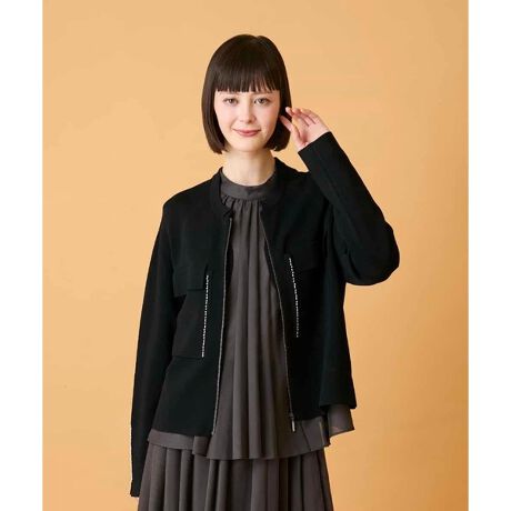 クリアな表面感の素材で軽やかな着心地が魅力的な一枚。胸元のカッティングやさりげなく施した切り替えラインがゆとりあるシルエットをコンパクトに魅せ、自然とスタイルアップを演出します。胸元の大きめなポケットやステッチがエッジの効いたアクセントをプラス。一枚着はもちろんライトアウターのインにも活躍し、季節の変わり目に重宝するおすすめのアイテムです。