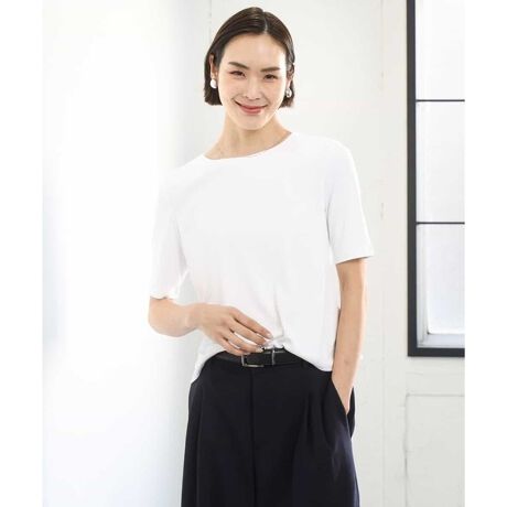 ミニマルで美しい表情が魅力の一枚。ジャケットのインナーとしても品よく映え、きちんと感のあるスタイルに仕上がります。きれいめボトムと合わせれば、オフィスシーンにも活躍します。