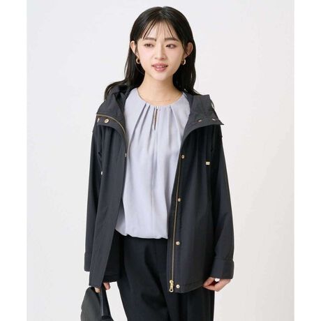 カジュアル過ぎないエレガントなデザインが大人っぽく着こなせる定番人気ブルゾン。後ろの丈を長くし、ヒップラインをカバーすることで、体型カバーも叶います。ゴールドのパーツとグログランテープがポイント。袖口カフスを透けない仕様にすることで、淡色でもゴムが透けにくく、よりきれい見えに。