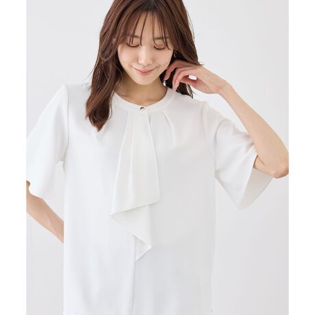 ・フロントのボウタイ風タックがアクセントとなり、1枚で着映えするブラウス。
