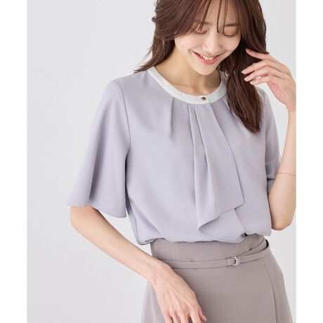 ・フロントのボウタイ風タックがアクセントとなり、1枚で着映えするブラウス。