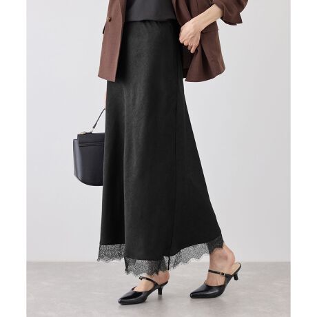 ・裾部分に繊細なレースをあしらい、歩くたびに足元が華やかに華やぐレディライクなデザイン。