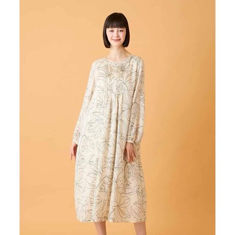 表情豊かなボタニカルモチーフを線画で上品に表現したワンピース