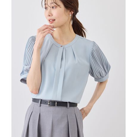 ・袖部分はプリーツデザインで切り替え、さりげない華やかさをプラス。