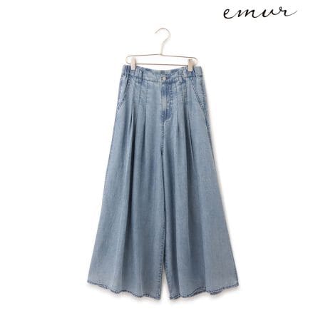 ・生地特有の落ち感を活かしたシルエットで、広がりすぎず脚のラインを美しく見せる優秀な一本。