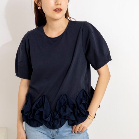 ・裾のボリュームフリルが華やかなパフスリーブカットソー