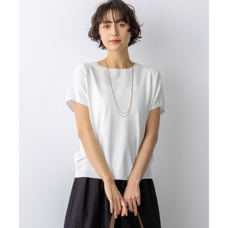 「23区」で長年愛されている人気定番素材です。サラサラとした爽やかな肌触りと、程よい光沢感が特徴で、装いを上品に引き立てます。伸縮性に優れた糸を使用しているため、着用時の型崩れが少なく、美しいシルエットを保ちます。また、生地表面にある微細な凹凸が肌への張り付きを防ぎ、気になるボディラインを拾いにくい適度な厚みを実現しました。ご自宅で手洗いが可能なイージーケアアイテムですので、デイリーに気兼ねなくご着用いただけます。