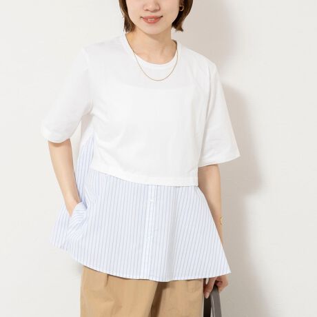 ・裾のストライプ布帛がシャツ見えしてきちんと感をプラス