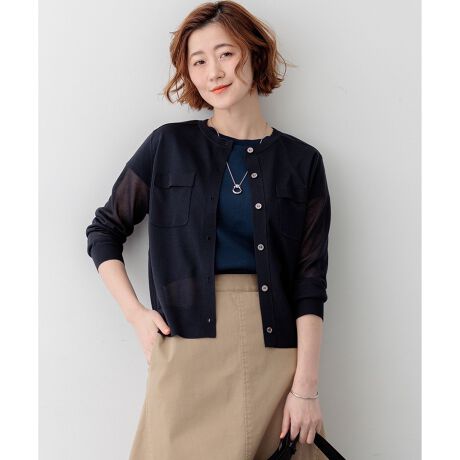 一枚着としても品よく決まる、大人のシアーニットカーディガン