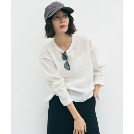 ■素材ポリエステルとマットなレーヨンを厳選し特殊な撚糸加工により、製品自体にほのかな透け感と程よいハリ感が生まれます。軽やかで通気性に優れ、シワになりにくい素材です。シアーでありながら、UVケア・抗菌防臭機能も嬉しいポイント。