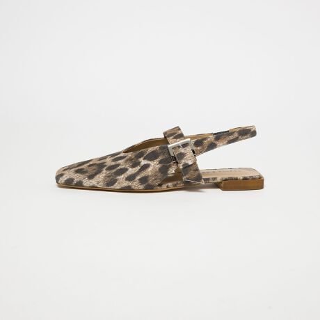 ロングノーズのスクエアトゥがシャープな印象のフラットシューズ。