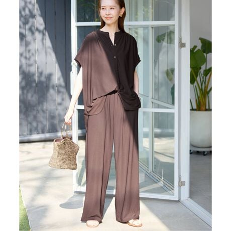 トップスはブラウス感覚で着られるボタン開きのデザイン。