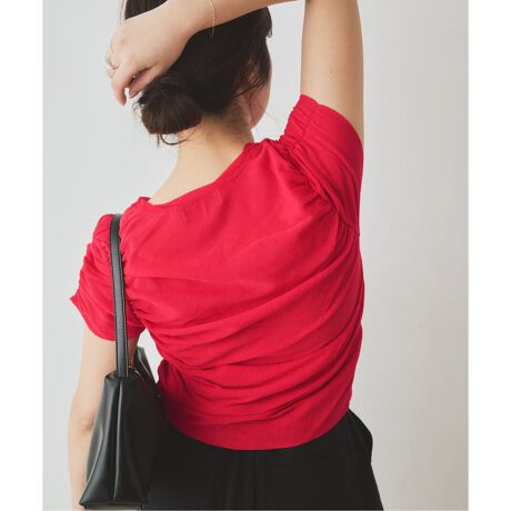 ギャザーとコンパクトなシルエットがトレンドライクな1着。