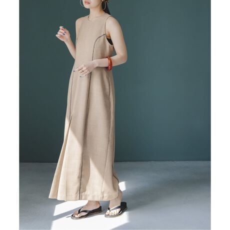 同素材のジャケットとセットアップで着用すれば簡単にSSらしいシティリゾートなスタイルが完成。1枚着やカーデやシャツと合わせても様になるワンピースです。