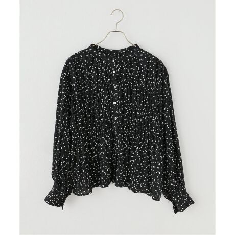 シャーリング2WAY無地ドットブラウス